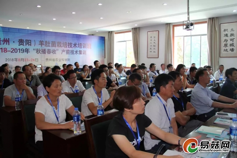 易菇网讯:8月24日,全国(贵州·贵阳)羊肚菌栽培技术培训班——2018-2019年“秋播春收”产前技术集训开班仪式在贵州农科院举行,来自辽宁、黑龙江、安徽、河南、湖北、湖南、广东、四川、贵州、云南、陕西、甘肃、青海、新疆等十多个省市地区的70余位代表参加了开班仪式。